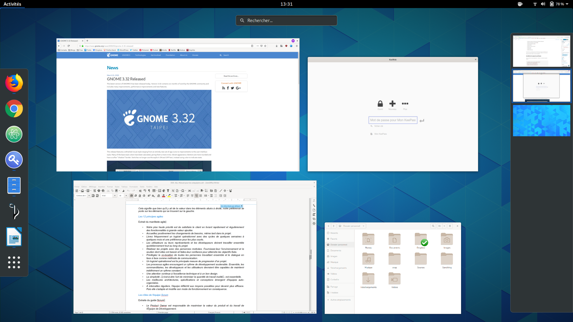 Je salue pleinement cette démarche qui vise à doter Ubuntu d’une forte identité visuelle et le résultat obtenu est sincèrement excellent. Cependant, je continue de préférer l’expérience GNOME 3 « vanilla » (surtout dans sa toute dernière version 3.32 !) qui offre, sciemment, un environnement de travail moins habituel d’un point de vue ergonomique mais pour un résultat visuellement plus élégant, moins envahissant (le contenu est roi) et, au bout du compte, tellement efficace (en particulier lorsqu’on sait équilibrer l’usage du clavier et de la souris).